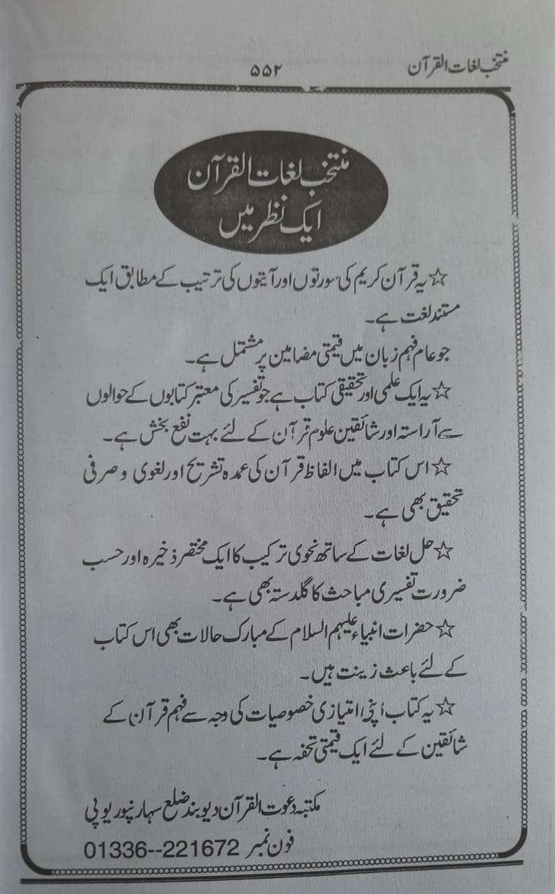 * …. قرآنِ کریم کی سورتوں اور آیتوں کی ترتیب کے مطابق ایک مستند لُغت ہے جو عام فہم زبان میں قیمتی مضامین پر مشتمل ہے
