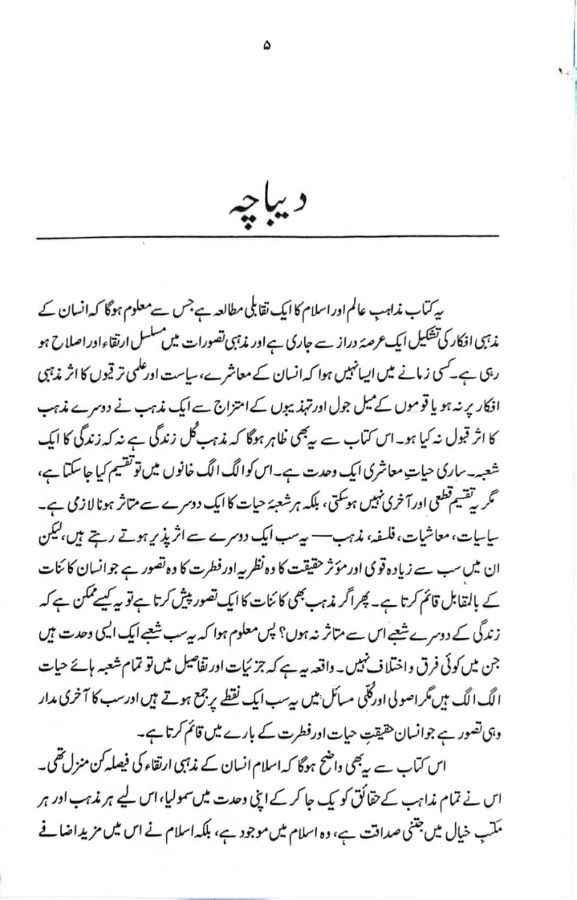 جب ہم مذاہب کی تاریخ کا مطالعہ کرتے ہیں۔ تو ہم پر یہ حقیقت منکشف ہوتی ہے۔ کہ جب سے یہ کائنات وجود میں آئی ہے۔ تب سے انسان اور مذہب ساتھ ساتھ چلتے آئے ہیں۔ ابتدا میں تمام انسانوں کا مذہب ایک تھامگر جوں جوں انسانوں کی تعداد میں اضافہ ہوتا گیا لوگ مذہب سے دور ہونے لگے پھر خالق کائنات نے مختلف ادوار میں انسانوں کی راہنمائی کے لیے پیغمبر بھیجے لیکن پیغمبروں کے اس دنیا سے رخصت ہو جانے کے بعد ان کے ماننے والوں نے ان کے پیغام پر عمل کرنے کی بجائے خود سے نئے دین اور مذاہب اختیار کر لیے اس طرح مذاہب کی تعداد میں اضافہ ہوتا گیا او ر اس وقت دنیا میں کئی مذاہب پیدا ہو چکے ہیں جن میں سے مشہور مذاہب، اسلام، عیسائیت، یہودیت، ہندو ازم، زرتشت، بدھ ازم، سکھ ازم شامل ہیں۔ اس بات سے انکار ممکن نہیں کہ بنی نوع انسان ہر دور میں کسی نہ کسی مذہب کی پیروی کرتے رہے ہیں۔ لیکن ان تمام مذاہب کی تعلیمات میں کسی نہ کسی حد تک مماثلت پائی جاتی ہے۔ جیسا کہ دنیا کے تمام مذاہب کسی نہ کسی درجے میں قتل، چوری ،زنااور لڑائی جھگڑے کو سختی سے ممنوع قرار دیتے ہیں اور تمام قسم کی اچھائیوں کو اپنانے کی تلقین کرتے ہیں۔ زیر تبصرہ کتاب ’’اسلام اور مذاہب عالم‘‘ جناب محمد مظہر الدین صدیقی کی تصنیف ہے۔ اس کتاب میں انہوں نے اس بات کو واضح کیا ہے کہ اسلام انسان کے مذہبی ارتقاء کی فیصلہ کن منزل تھی۔ اس نے تمام مذاہب کے حقائق کو یک جا کر کے اپنی وحدت میں سمو لیا ہے۔ اس لیے ہر مذہب اور ہر مکتبِ خیال میں جتنی صداقت ہے وہ اسلام میں موجود ہے بلکہ اسلام نے اس میں مزید اضافے کیے۔ اس لحاظ سے یہ انسان کا سب سے ترقی یافتہ مذہب ہے