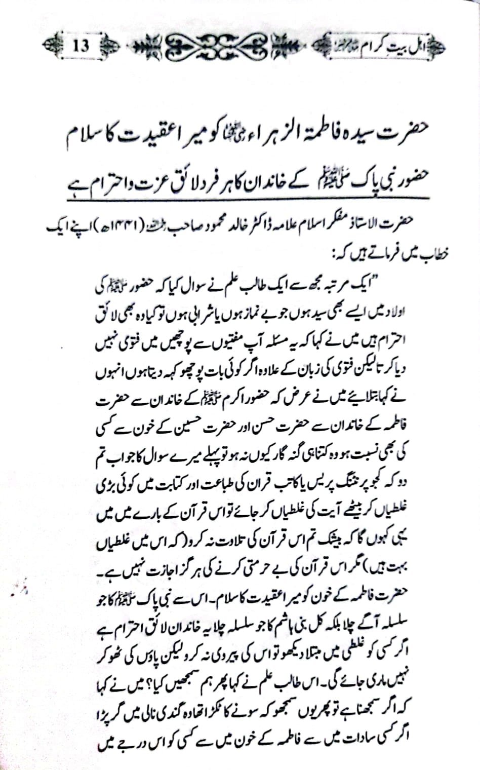اہل بیت رسالتﷺ سے محبت ضروریات مذہب اہل سنت ہے
