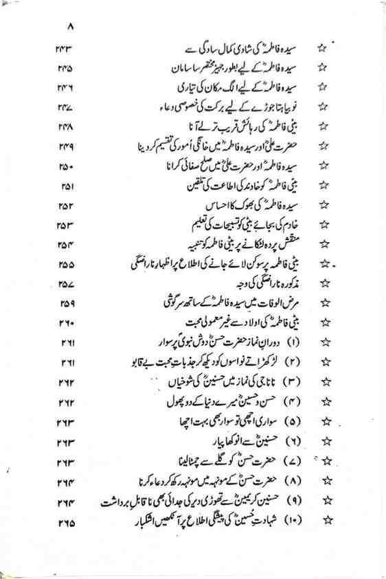 یہ کتاب سات ابواب پر مشتمل ہے باب اول آدابِ فرزندی ، باب دوم بہترین رفیقِ حیات ، باب سوم شفقتِ پدری اور تربیت جیسے موضوعات پر مشتمل ہے