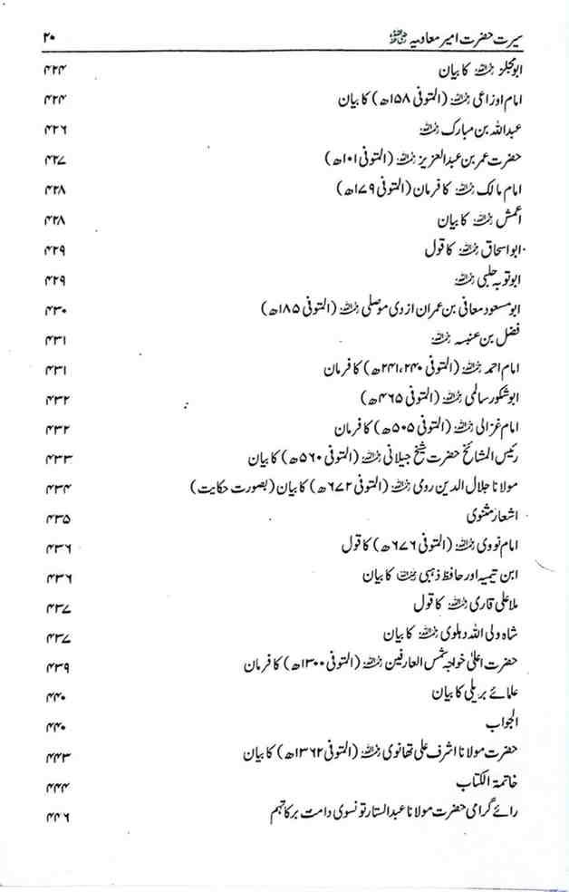 حضرت مولانا محمد نافع صاحب کو اللہ تعالیٰ نے اس بات کی خصوصی توفیق عطا فرمائی ہے کہ انھوں نے اپنی متعدد تالیفات کے ذریعے سے حضرات صحابہ کرام کے حقیقی سیرت و کردار کو مستحکم علمی اور تاریخی دلائل کے ساتھ واضح فرمایا ہے۔ جن انصاف نا آشنا حلقوں نے ان حضرات پر طرح طرح کے اعتراضات وارد کیے ہیں ان کا شافی اور اطمینان بخش جواب دیا ہے اور حضرات صحابہ کرام کے درمیان جو علمی اور سیاسی اختلافات پیش آئے، ان کے حقیقی اسباب کی دلنشیں وضاحت فرمائی۔ حضرت معاویہ ان صحابہ کرام میں سے ہیں جن کے خلاف اعتراضات و مطاعن کے ترکش سے کوئی تیر بچا کر نہیں رکھا گیا۔ زیر تبصرہ کتاب ’سیرت امیر معاویہ رضی اللہ عنہ‘ میں حضرت مولانا محمد نافع صاحب نے ان کی سیرت کے حقیقی روشن پہلوؤں کو مضبوط دلائل کے ساتھ اجاگر کیا ہے۔ پہلی جلد کے پہلے حصے میں حضرت معاویہ کے سوانح، عہد رسالت میں ان کے منصب و مقام اور کارنامے اور ان کے مناقب کی احادیث کو پوری تحقیق کے ساتھ بیان کیا ہے۔ دوسرے حصے میں حضرات خلفائے ثلاثہ کے عہد مبارک میں حضرت معاویہ کی خدمات اور دیگر کارناموں پر روشنی ڈالی گئی ہے۔ تیسرے حصے میں حضرت عثمان کی شہادت کے بعد کے واقعات زیر بحث لائے گئےہیں۔ چوتھے اور آخری حصے میں فاضل مؤلف نے حضرت معاویہ کے عہد خلافت کے کارناموں، فتوحات، ان کے قائم کیے ہوئے انتظامی ڈھانچے، ان کی رفاہی اور ترقیاتی خدمات، ان کی علمی کاوشوں، ان کے مکارم اخلاق اور اہل بیت کے ساتھ خوشگوار تعلقات کا ذکر ہے۔ آخر میں حضور اقدسﷺ کے ساتھ ان کے عشق و محبت کے مظاہر اور ان کے بارے میں اکابر امت کی آرا نہایت تفصیل اور استقصا کے ساتھ پیش کی ہیں۔
