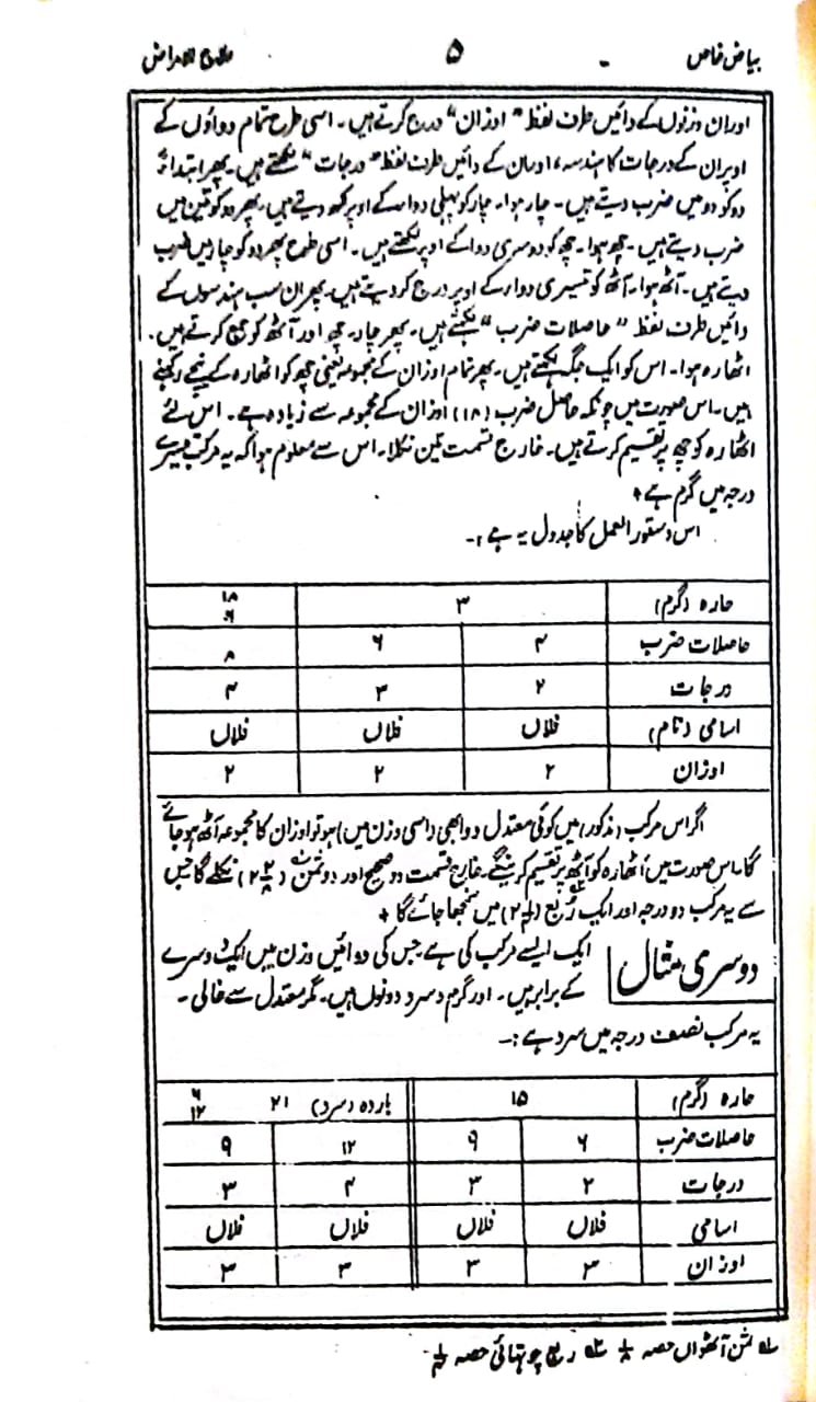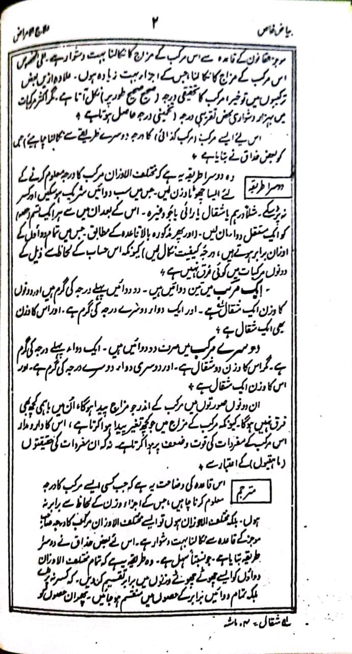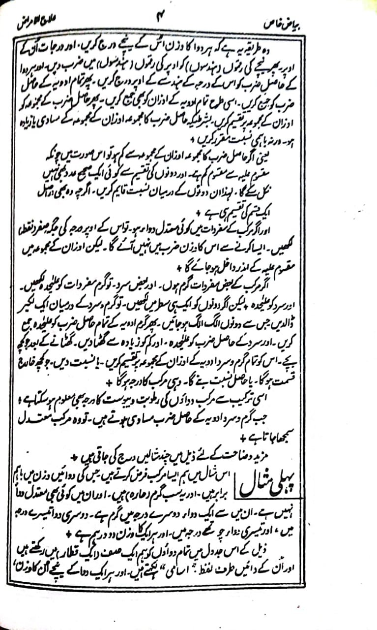 علاوہ ازیں ادویہ کے اوزان کو متعارف اوزان ، مثلاً تولوں اور ماشوں میں لکھا گیا ہے ۔ تاکہ بوقتِ ضرورت غیرمتعارف اور غیر مروج اوزان مثلاً اوقیہ مثقال اور درہم وغیرہ کے معلوم کرنے کی زحمت و پریشانی نہ اٹھانی پڑے ۔
